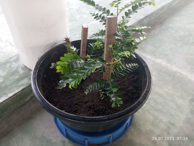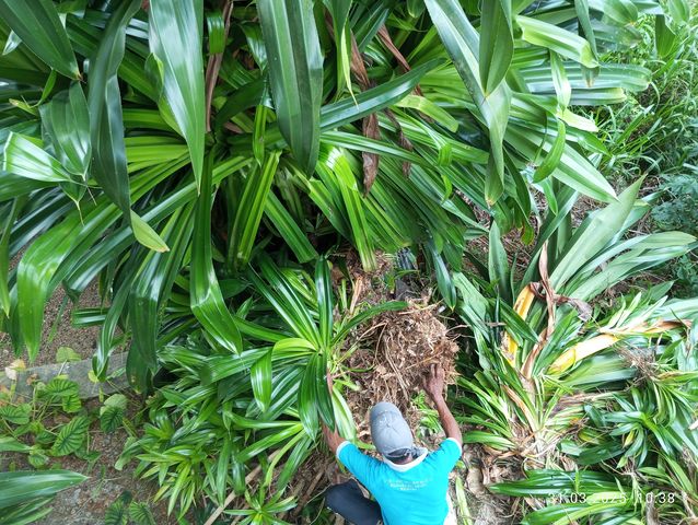 | Sisira kaempft mit der umgefallenen Drachenpflanze. Nun steht sie wieder, jedoch muss | die Luecke wieder zuwachsen. |