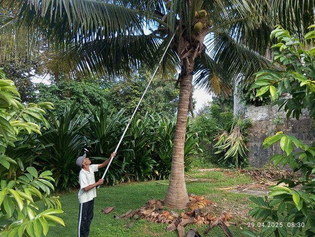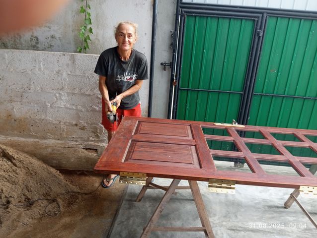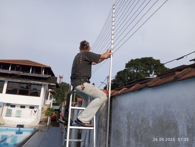| Sisira kaempft mit der Palme, die eingegangen ist und gefaellt werden musste. Video 22 | Unsere Scooter zur Vermietung. Nummernschild gibts nach 6 Monaten immer noch nicht. |