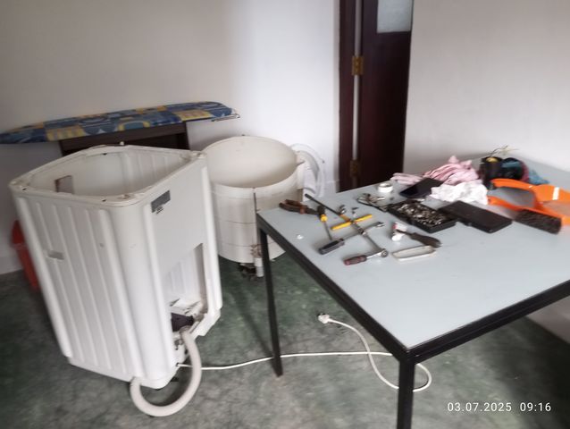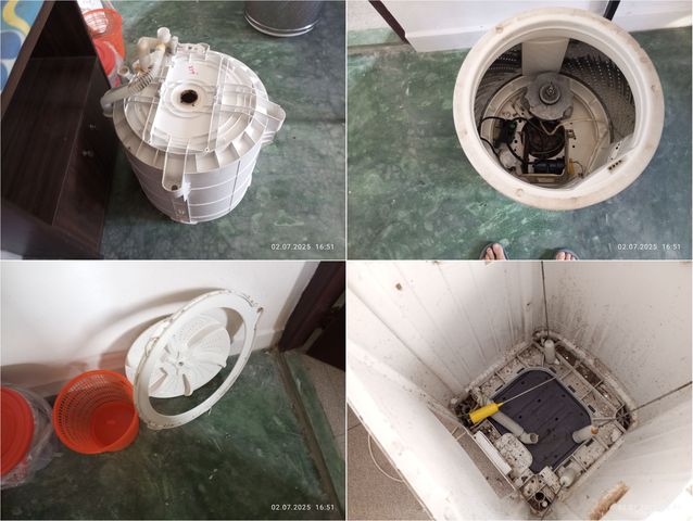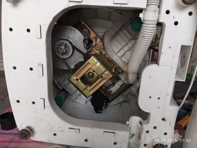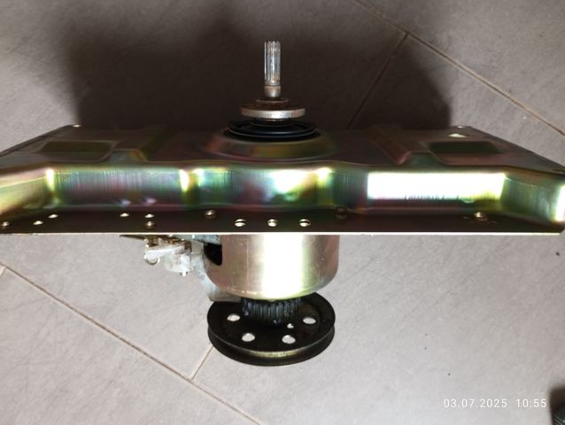 | Das ist die ominoese Kupplung der Waschmaschine, die kaputt gegangen ist. Da sie ganz... | ...unten sitzt, musste die ganze Waschmaschine auseinander genommen werden. |