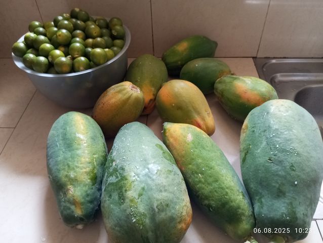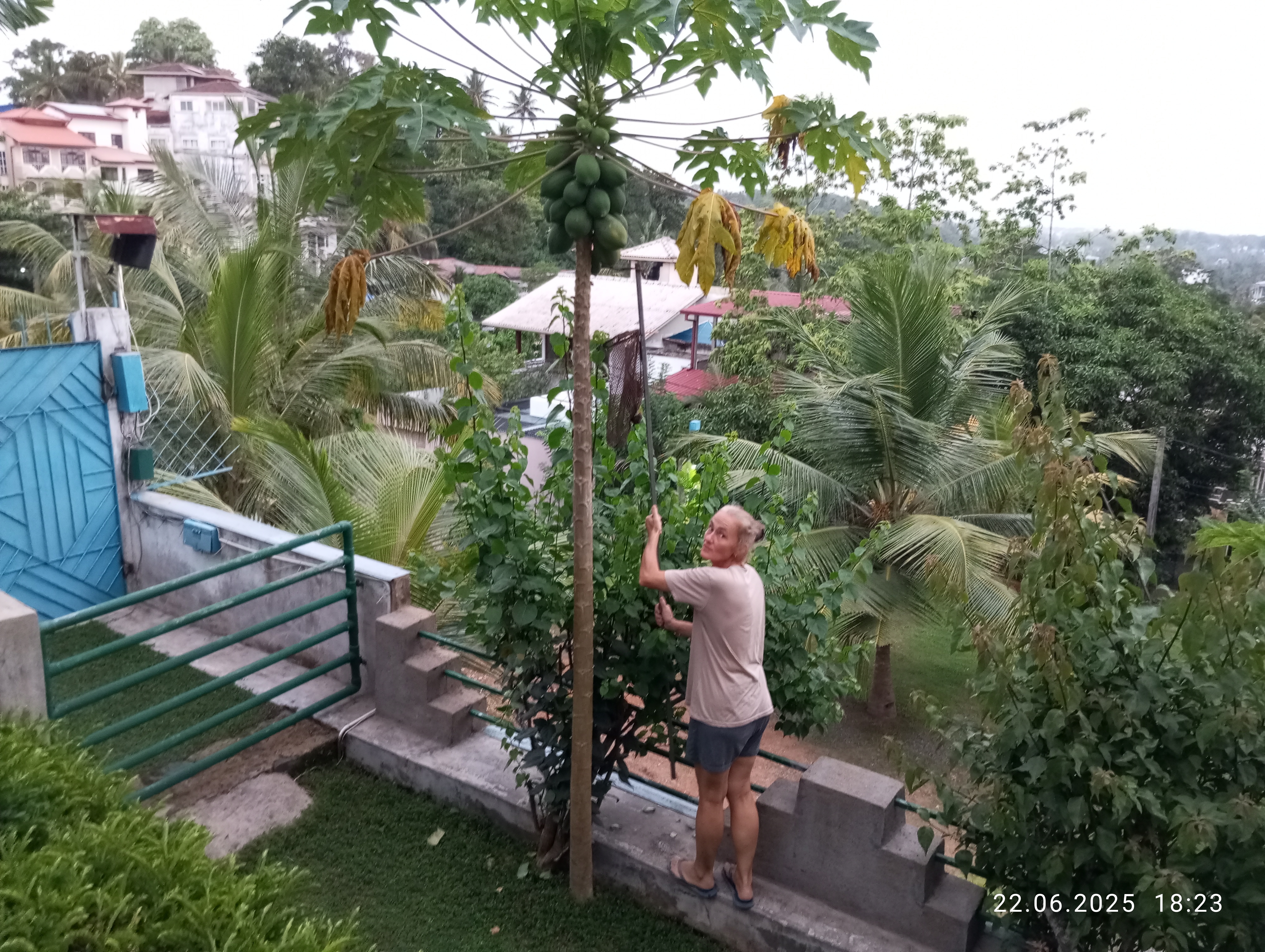 | Aber auch die Papayas kommen nicht zu kurz. Immer wieder gern gegessen. | Unser Hochbeet. Eigentlich mehr ein Versuchsbeet fuer Neuzuechtungen. |