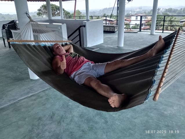 | Wie schon angedeutet, wird die DT nun immer schicker. Sitzmoeglichkeiten mit Polster,... | ...Hangematten zum Liegen und Chillen. |