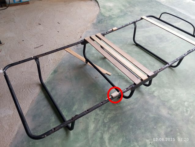 | Die Latten von dem Campingbett sind auseinander gegangen. So musste eine neue .... | Lattung installiert werden. Erstmal die alten Plastik Steckhuelsen ab, dann... |