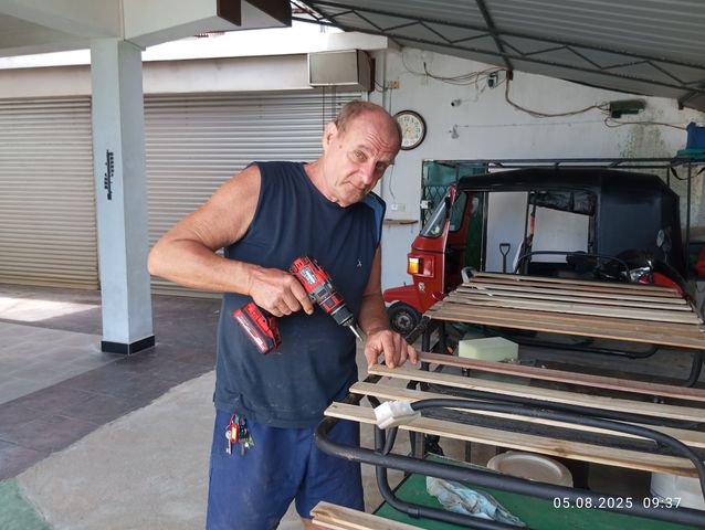 | ... die neuen Latten auf geschraubt. Video 24 | Nun wieder alles schick und es kann darauf geschlafen werden. |