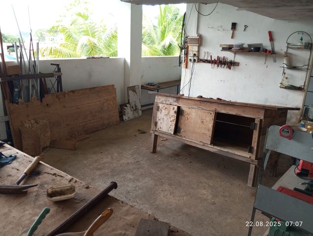 | Es folgen die alltaeglichen Arbeiten. Den Holzraum aufgeraeumt und gut sortiert. Ebenso.... | ...Plastik und Metallrohre. |