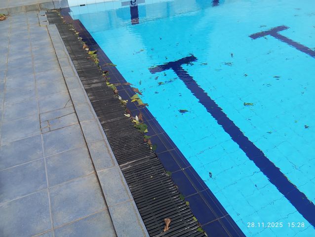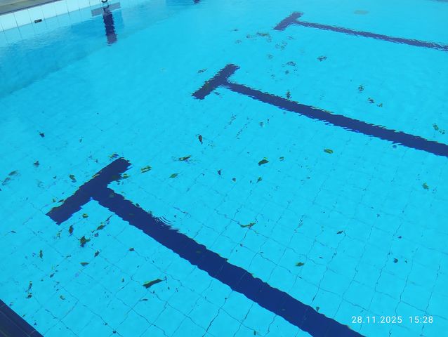 | Der Sturm hat die Blaetter im Pool verteilt. | Passiert GsD nur maximal zweimal im Jahr. |