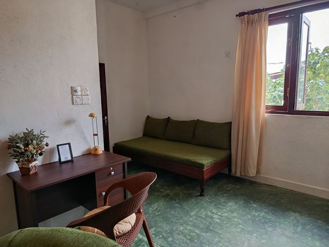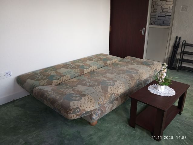 | Arbeitsecke mit Schreibtisch im AP2. | Eine Snapkautsch auch als Gaestebett nutzbar. |