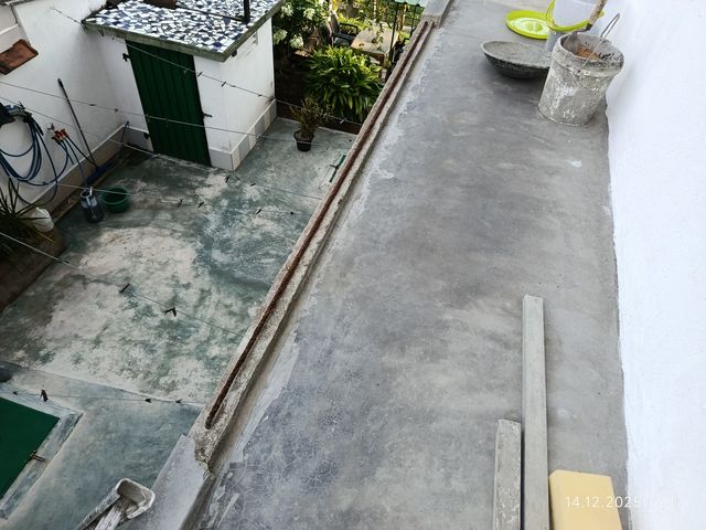 | Die Kante vom Umlauf im 1.OG ging leider kaputt. Leider mal wieder Fusch am Bau. | Nun haben wir selber repariert, mit Eisen drin und jetzt wird es auch halten. |