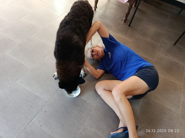 | Frau Hundedoktor entfernt die Zecken. Ist momentan wieder mal so eine Phase. | |