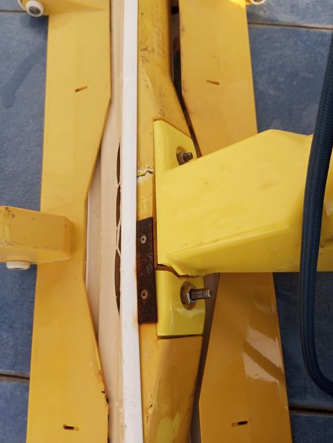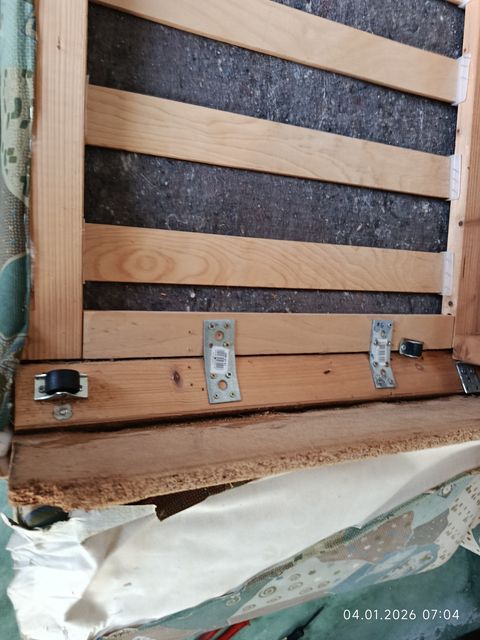 Ein neues Brett zugesaegt und mit neuen Schrauben montiert. |