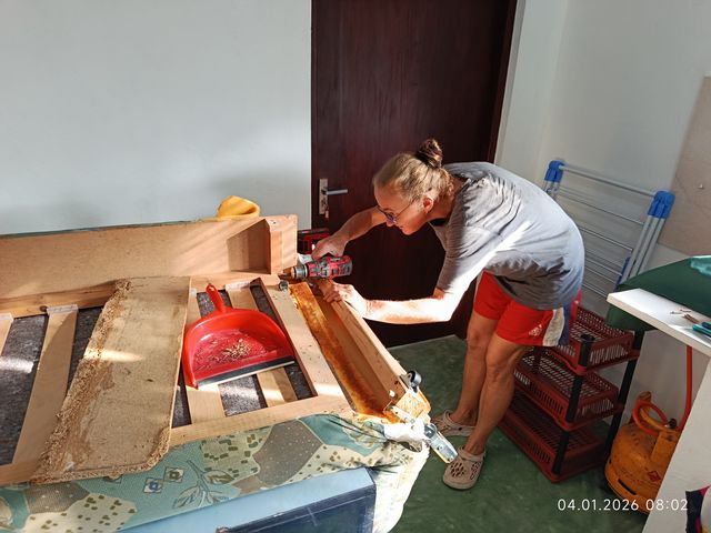 Also alles neu verschrauben, natuerlich ordentlich. Anschliessend gut verleimen. |