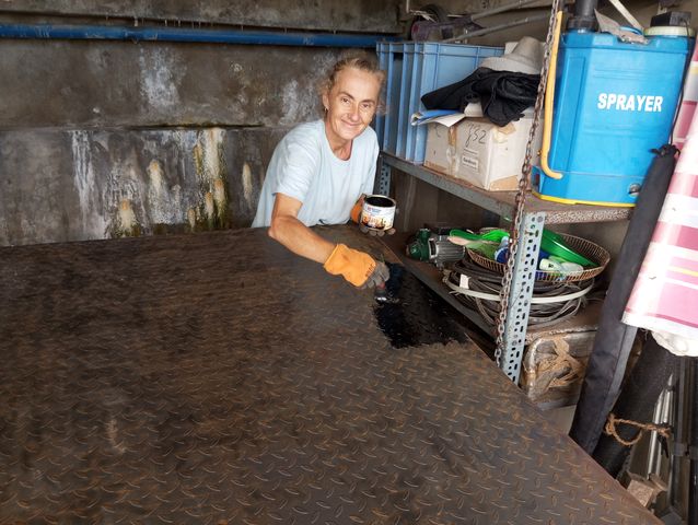 Jacky streicht den Umlauf, das es Zeit wird. Durch Regen und Sonne und Modifizierung... |