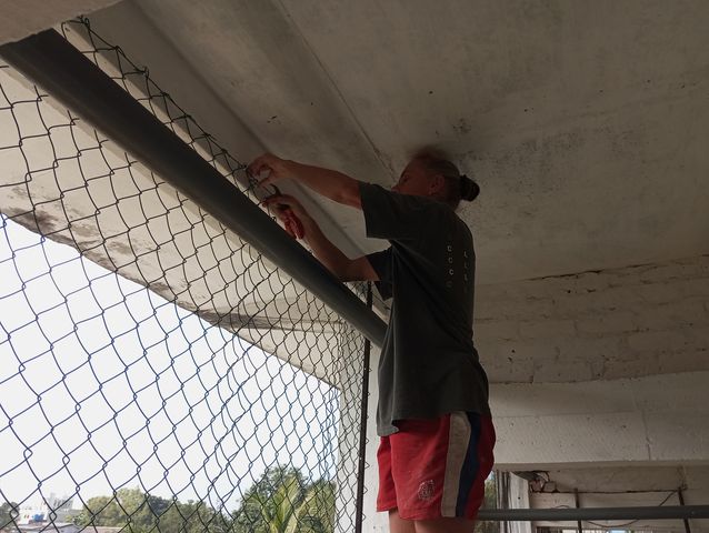 | Ein weiterer Teil im Pavillon wird mit einem neuen Zaun versehen. Bisschen Diebstahlschutz. | nach dem Motto, oh Herr bitte fuehre mich nicht in Versuchung. Video 008 |