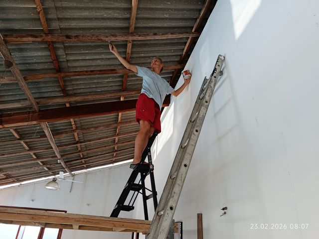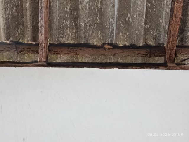 Die alten Moskitonetze muessen ab. Die Balken werden gegen Kleintiere nochmals... |