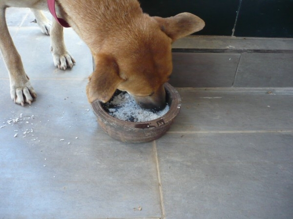 Diego mit Flohhalsband. Hatten wir ihm mal angelegt. Hielt nicht lange.