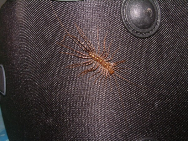 Ein giftiger Tausendfüßler. Unserem Partner aus der Aktentasche gekrochen.