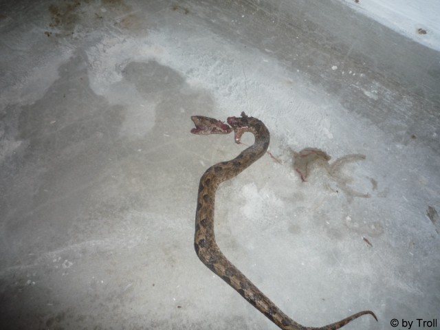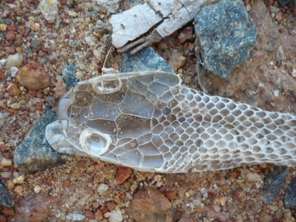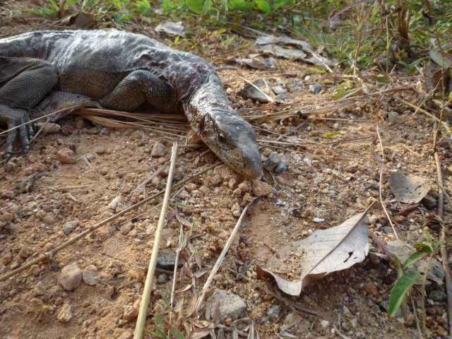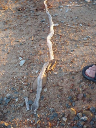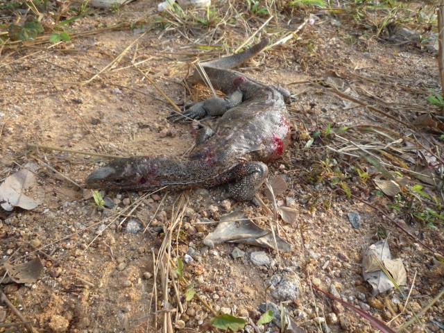 Eine tote Nasenviper. Wahrscheinlich nach einem Kampf mit einem Varan.
