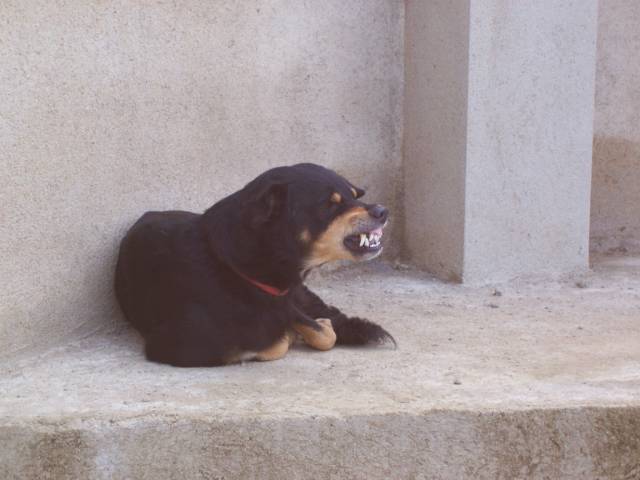 Dieser Hund ist verletzt und wehrt sich mit letzter Kraft gegen unseren Wachhund Diego.
