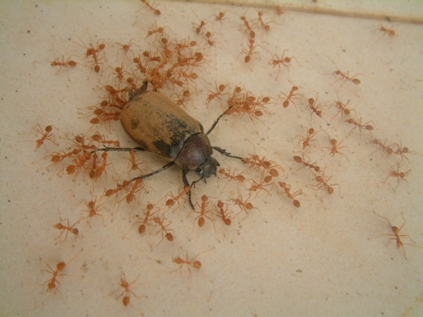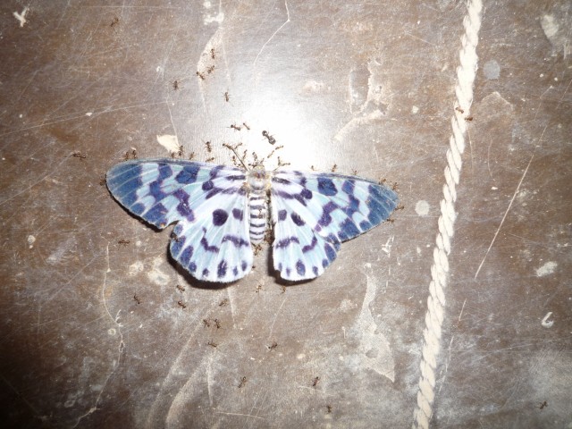 Ein Schmetterling in den Klauen der Ameisen. Dazu gibt es auch ein Video.