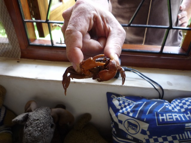 Eine Krabbe, die es vom Meer bis zu uns geschafft hat. Vielleicht mit dem Bus?