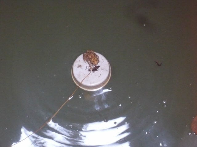 Die Kroete ist versehentlich in unsere Sisterne gesprungen und hat sich dann auf den Schwimmer gerettet. Von diesem haben wir sie dann befreit (siehe Video)