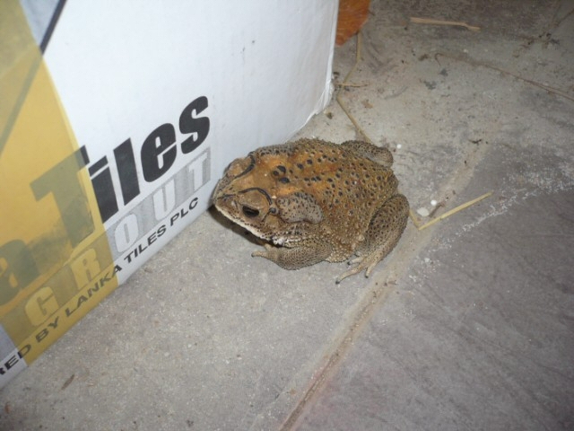 Hier ist eine Kröte in unseren Wassertank gesprungen, weil der Deckel offen stand.