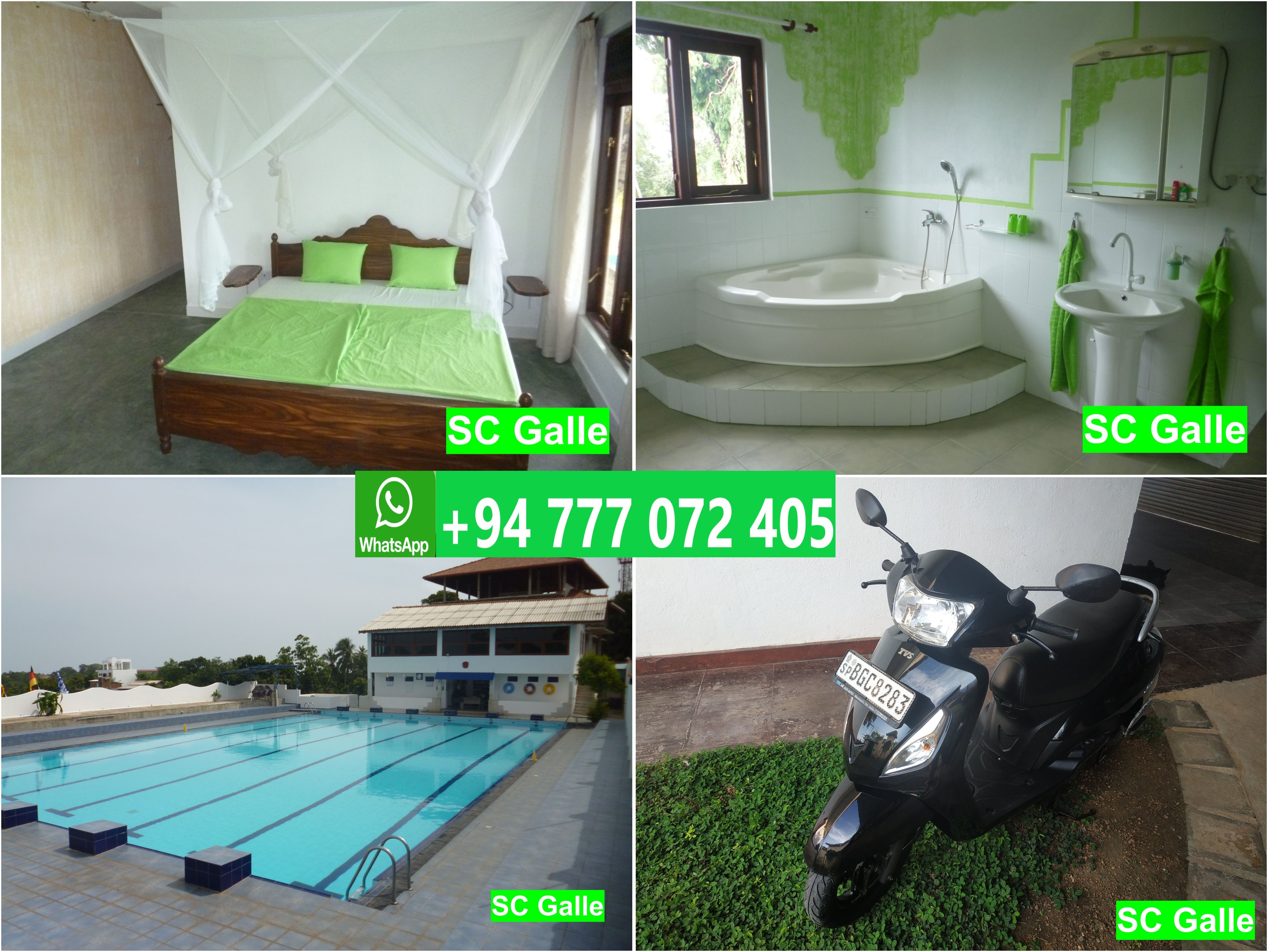 Das SC Galle ist 3 km vom Galle Fort, Galle Mitte und dem Cricket Stadion entfernt.Ein großer Garten läd zu sonnigen Stunden ein. Die Zimmer verfügen über Ventilator, einen Sitzbereich und einem Bett mit TOP Matratze inklusive Moskitonetz. Eine Klimaanlage gegen Aufpreis ist möglich!Wir bieten 2 Zimmer / 1Appartement, Residenzen und auch Eigentumswohnungen an.